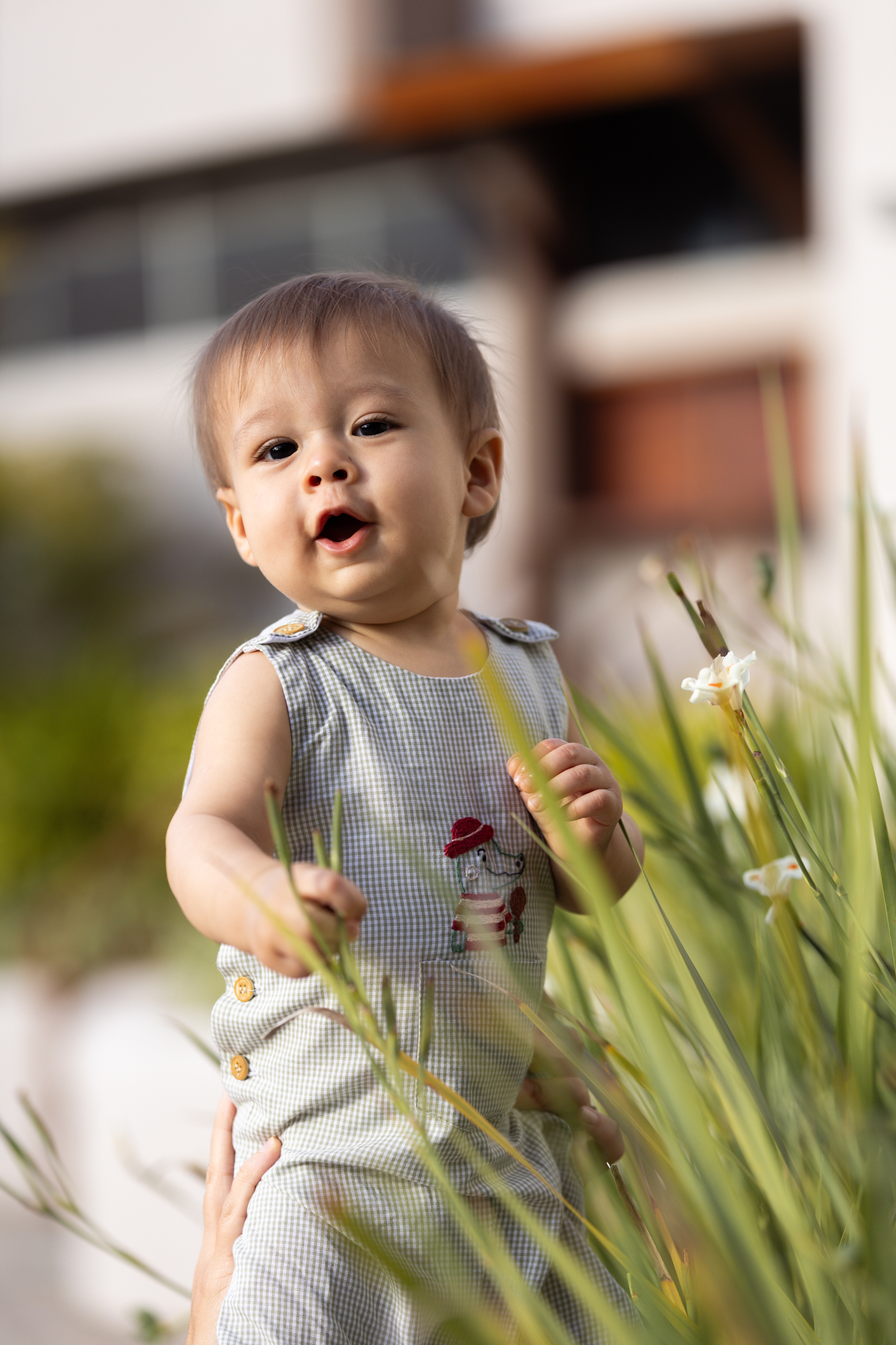 Possui botões nas alças e nas duas laterais para melhor ajuste, além de abertura entrepernas que facilita a troca de fraldas.