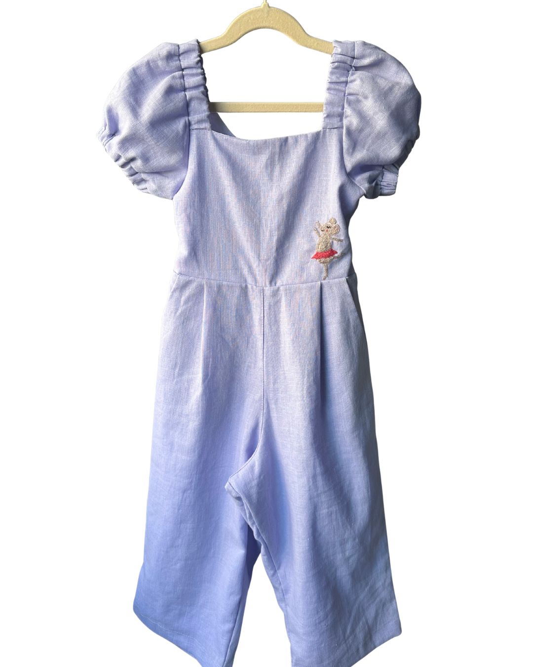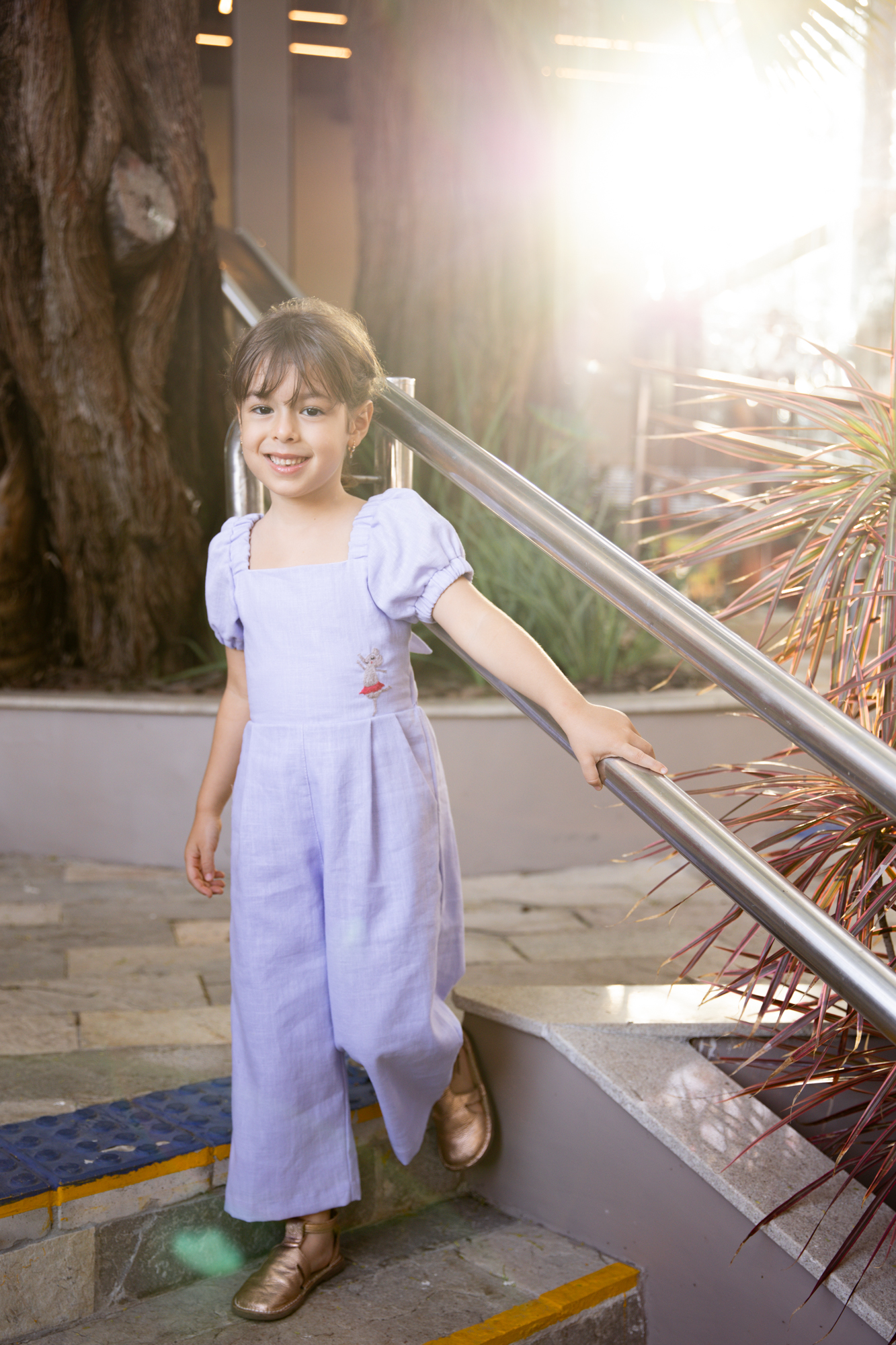 Possui bordado manual de uma elefanta dançando balé, trazendo delicadeza e poesia à peça.
